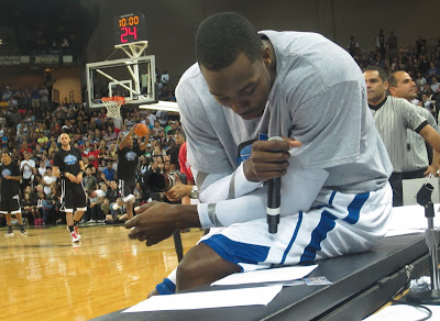 The game started and it was great to see all of the guys on the same court together. Some of my favorites included Old School players: Courtney Lee, Marcin Gortat, Drew Gooden & Penny Hardaway. I loved watching the New School team made up of our current players as well, with my favorites being Jameer Nelson, Ryan Anderson, Hedo Turkoglu and of course, Dwight.