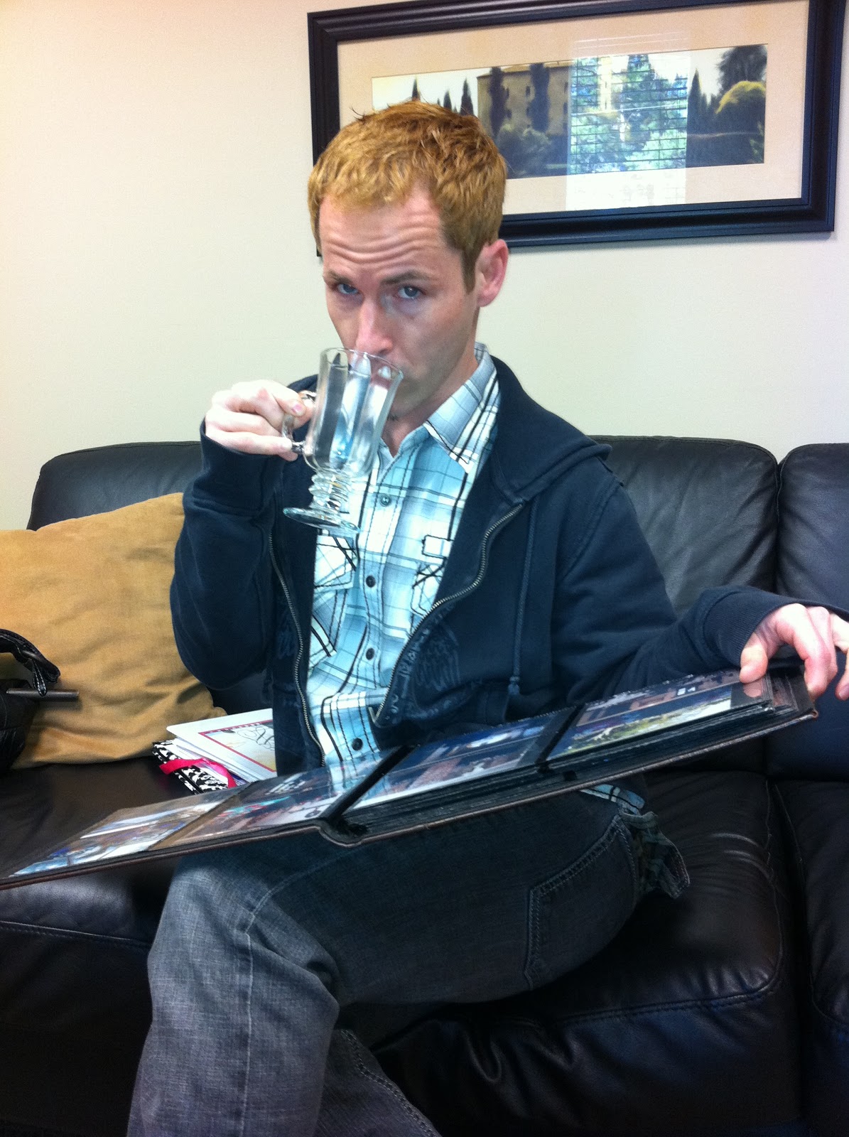 | Scott is looking over the photos, sipping coffee. How fancy! |