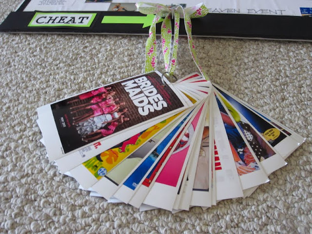 Can you think of the movies any of those fabulous quotes came from? Well, just in case you have no idea we made a CHEAT deck of cards with the corresponding movie to movie quote on each one. (By the way, the first one was from Borat, the second was Pretty Woman & the third was Dirty Dancing…all of MY FAVS!!)