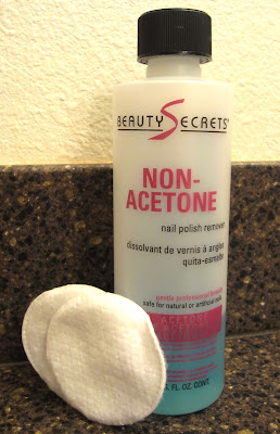 Give nails one last swipe of nail polish remover to remove any excess dirt & oil. (This step is the most important to make sure your manicure last as long as possible!) Make sure there is no nail polish creamy or oily residue left behind. I used a Beauty Secrets Non-Acetone nail polish remover I got at Sally’s Beauty Supply a while ago…it’s almost gone but I’ll probably replace it with the same bottle, it works great!