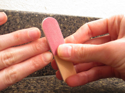 Gently smooth surface of nails with white side of file.