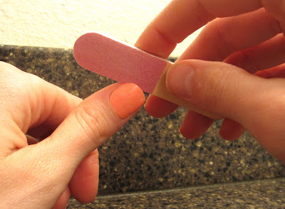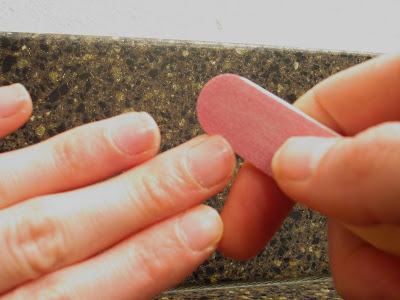 Shape the edge of your nail with the hot pink side of file.