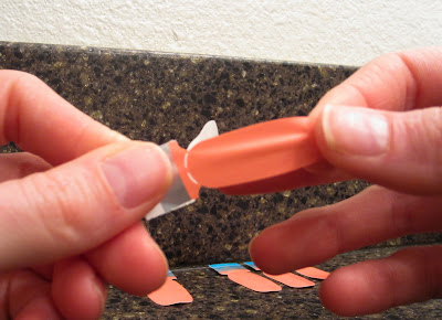 STEP 2: PEEL. Remove clear protective plastic cover, then peel nail polish strip from backing paper.